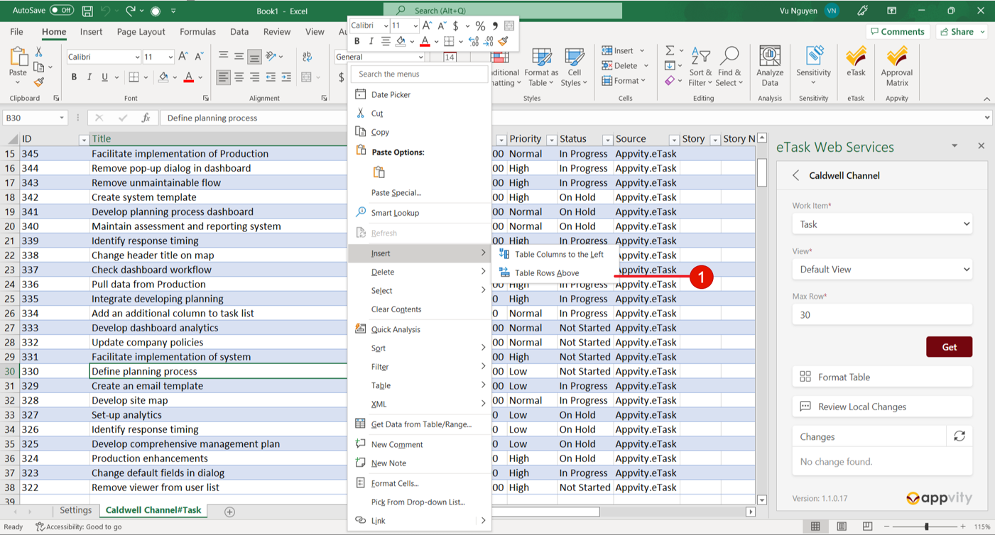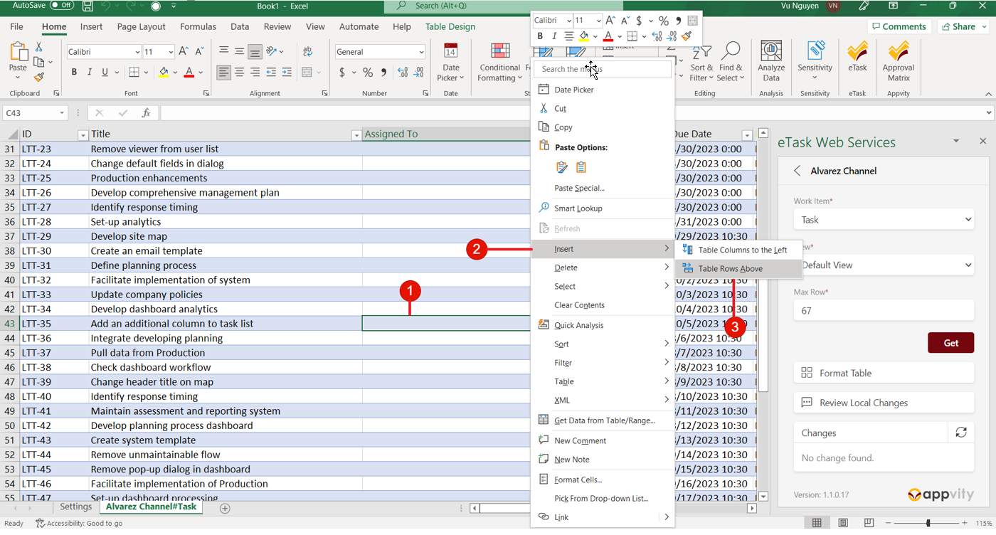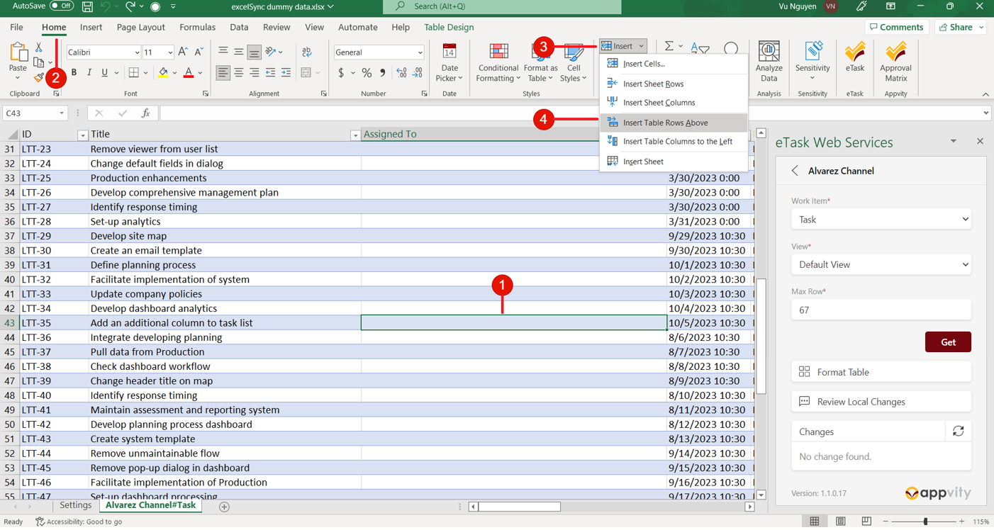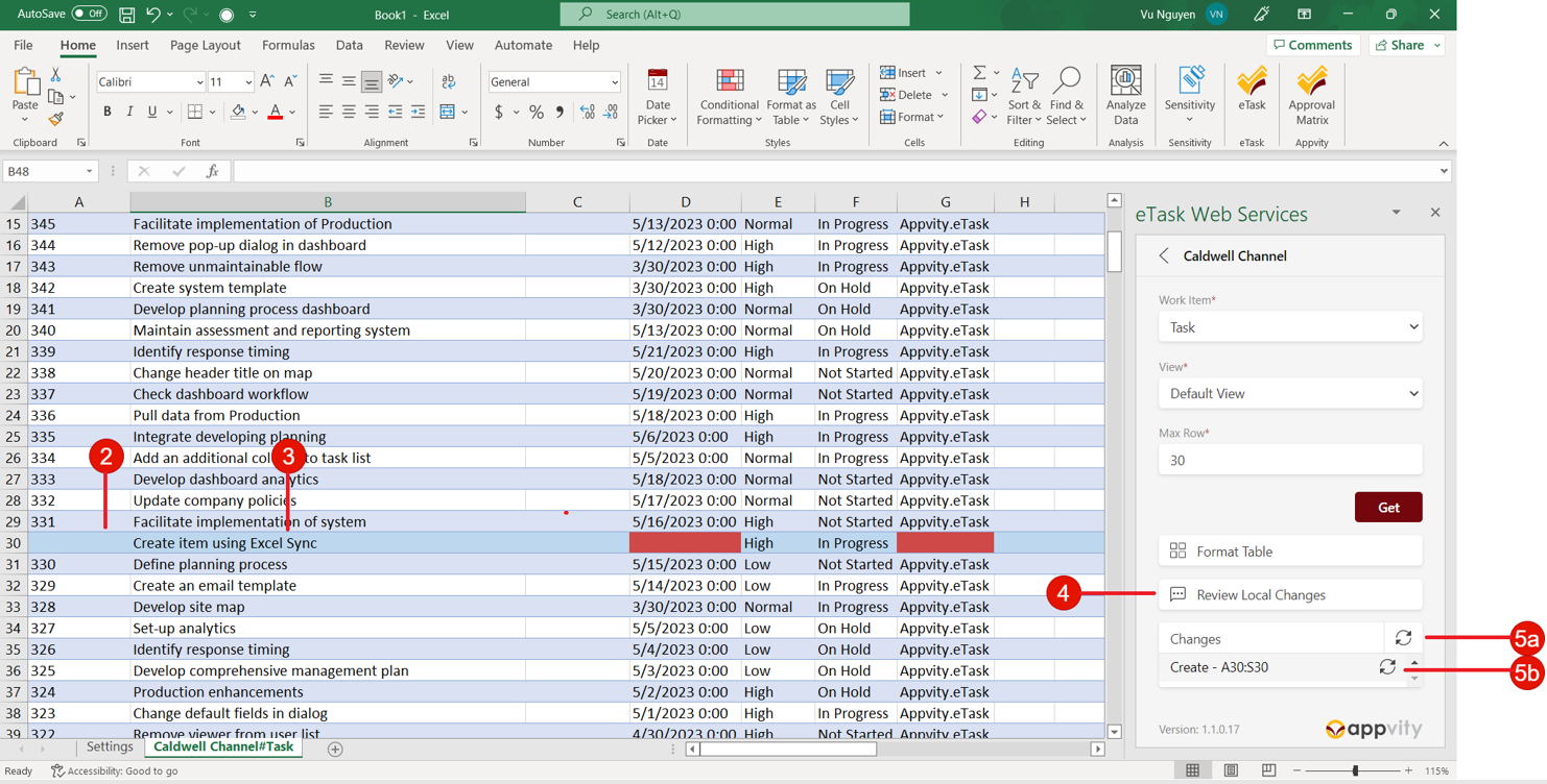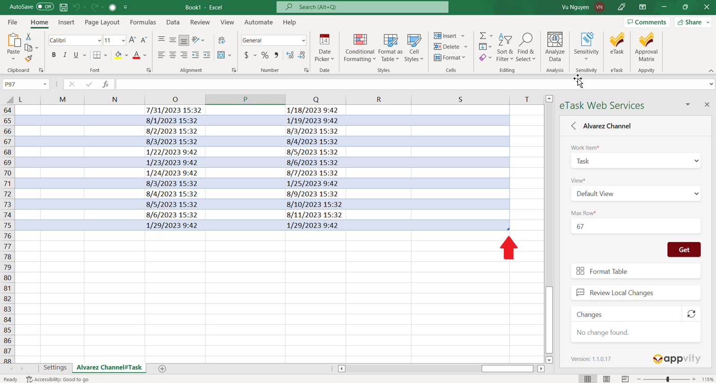 After inputting data, check the Excel task pane and click “Review Local Changes”. If any red-colored cells appear in the table, it means that the required data has not been inputted for those fields. Input valid data and click “Review Local Changes” again until all cells are no longer colored red.