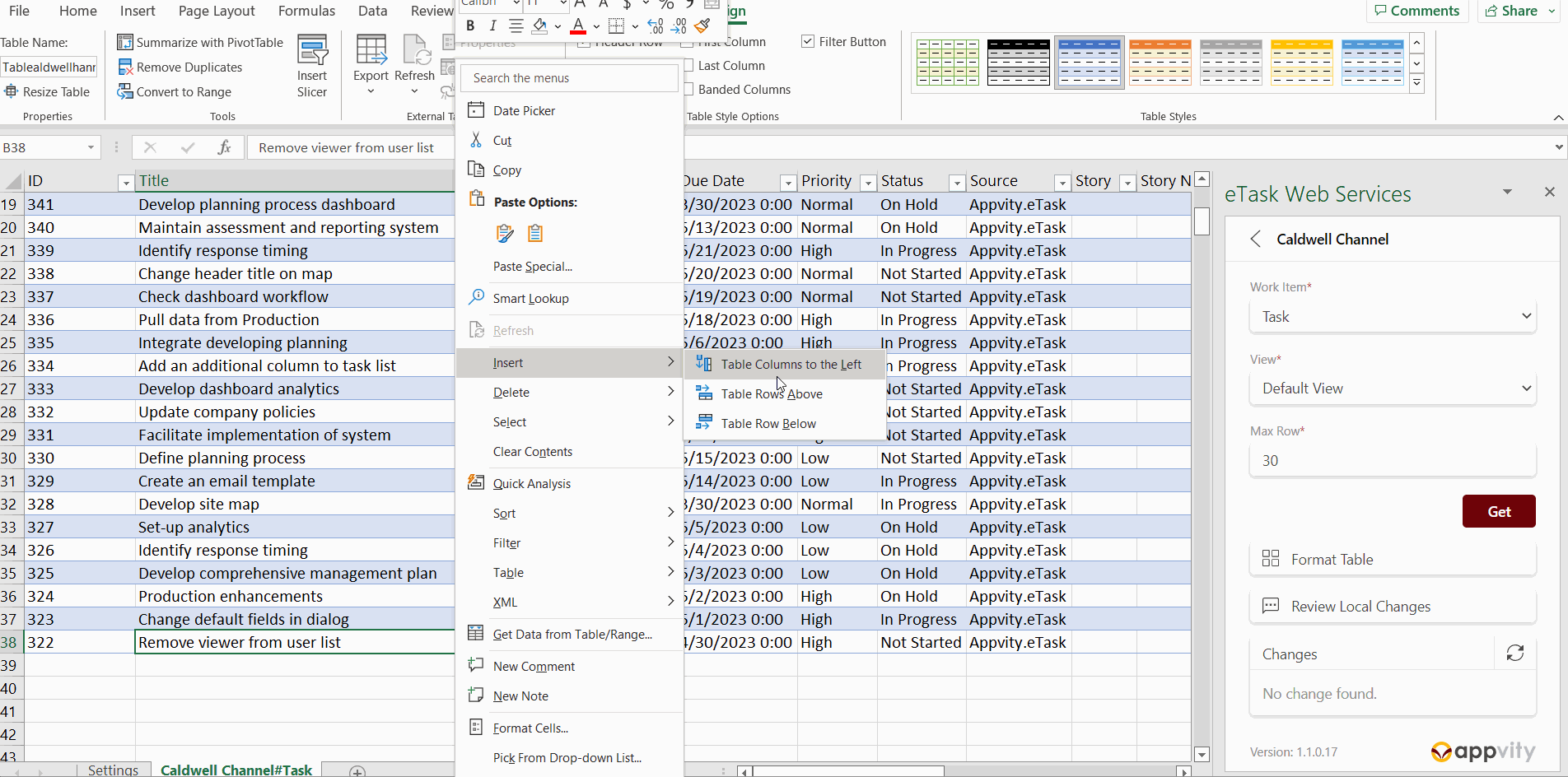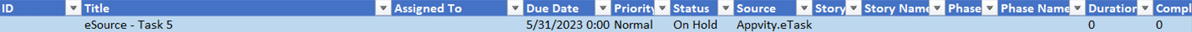 Verify that the row you created is located within the Excel table. If it is not, delete the row and create a new one that is within the table. If it is, proceed to the next step. If you want to drag down a row of an existing item to duplicate the exact data, do not select ID, Modified, Created By, Created At, Completed Date and TID rows.